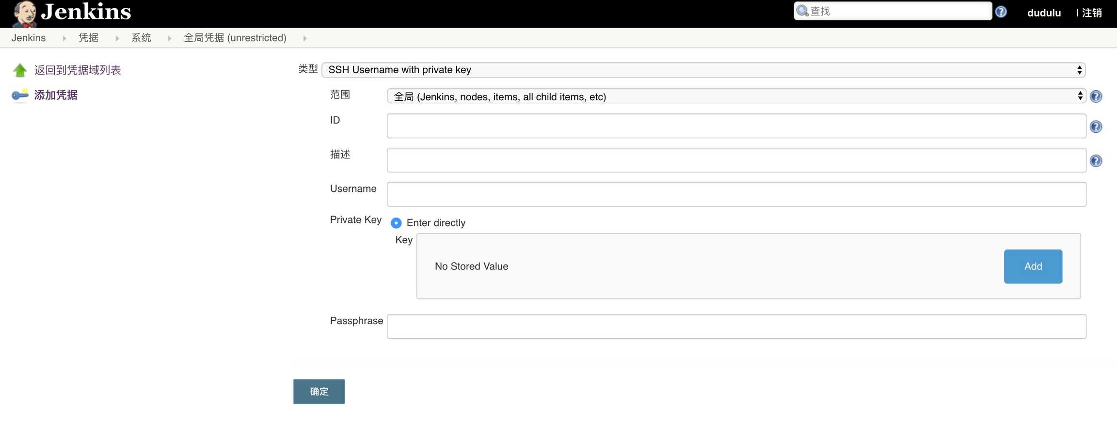 将 privateKey 贴到 private Key块中,这样jenkins服务器就可以访问到gitlab服务了。